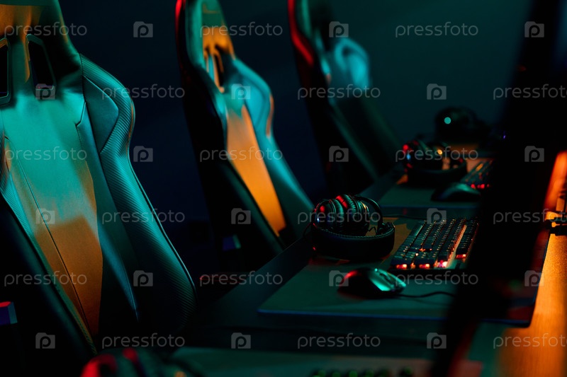 Пустые игровые стулья и гарнитуры ждут прибытия команды подростковых девушек-игроков