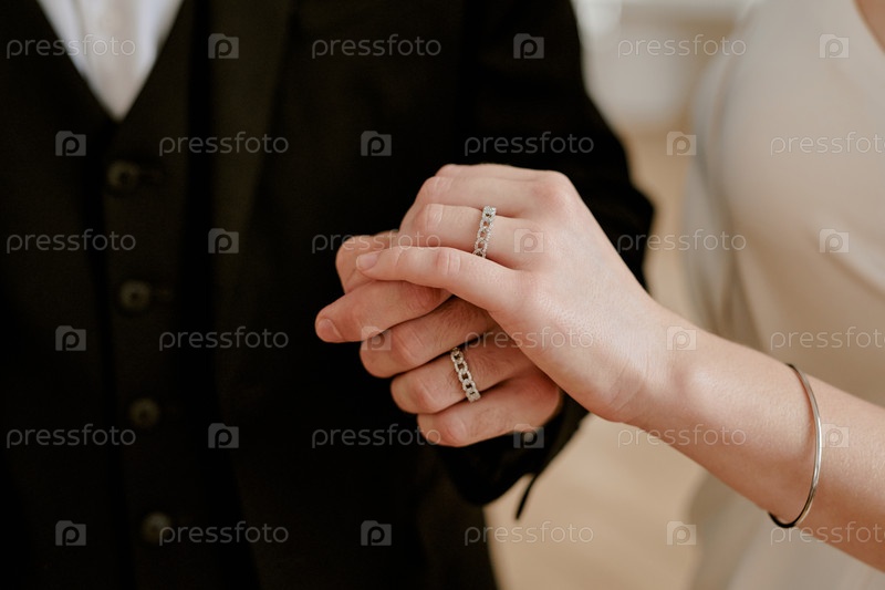 Молодая взрослая пара, держащаяся за руки во время церемонии празднования свадьбы
