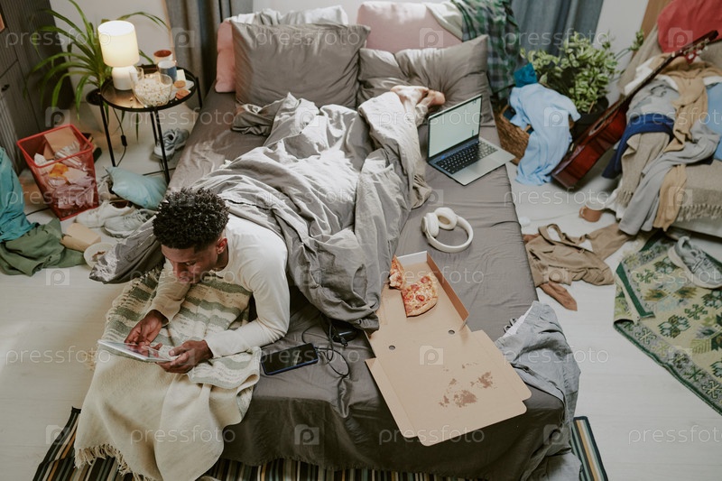 Работать на планшете, лежа в постели и окруженный беспорядком
