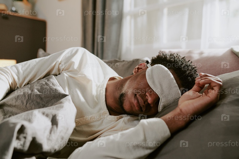 Мужчина с маской для глаз в уютной обстановке спальни