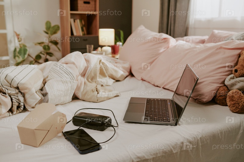 Настройка из дома в уютной спальной среде Работа из дома