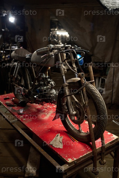 Мотоцикл на заказ собирается и ремонтируется в мастерской молодым взрослым мужчиной