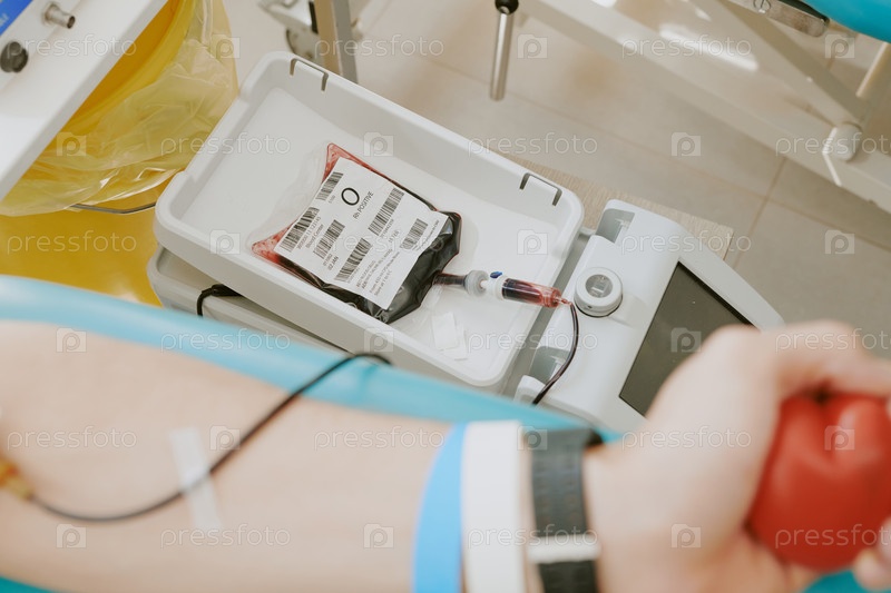 Молодой взрослый человек сдает кровь в медицинском учреждении во время акции по донорству крови