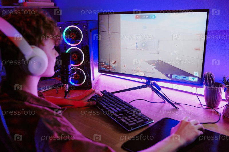 Ребенок-подросток живая трансляция видеоигры во время ношения наушников
