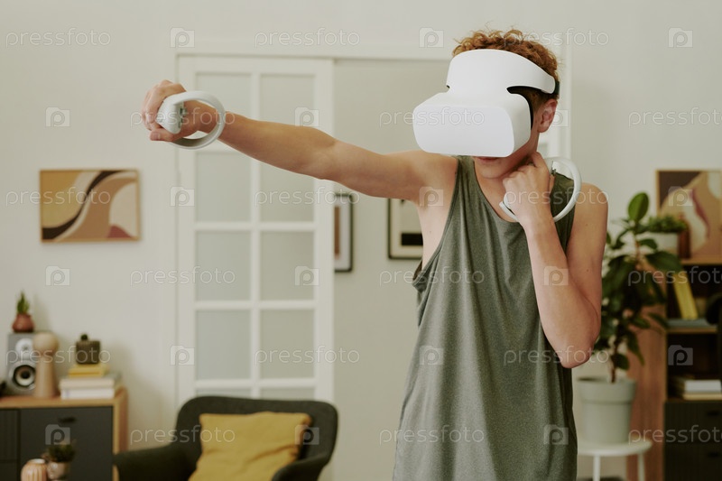 Мальчик-подросток тренируется с помощью гарнитуры виртуальной реальности дома