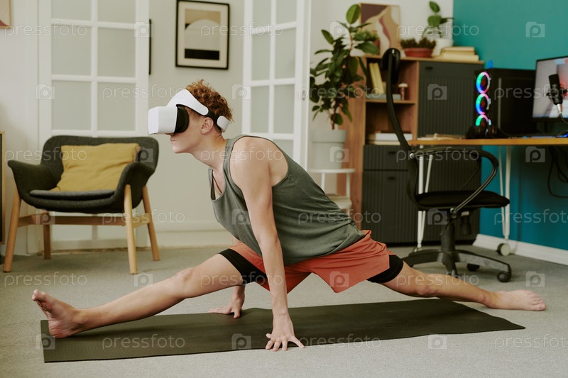 Мальчик-подросток, тренирующийся с помощью VR Headset во время домашнего досуга