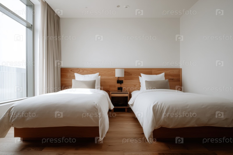 Пустой номер отеля с двумя кроватями и минималистическим дизайном интерьера