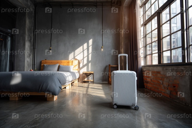 Интерьер гостиничного номера с багажом прибывает для современного размещения гостей