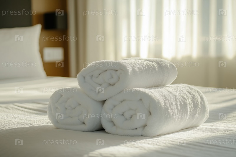 Свежие полотенца расположены на кровати, обеспечивая премиальный опыт обслуживания гостиниц