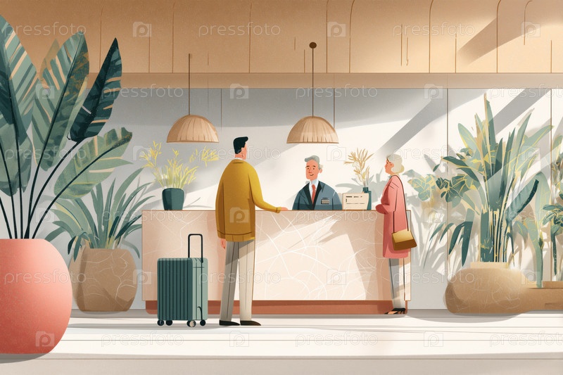 Мужчина средних лет, регистрирующийся у старшей женщины в приемной