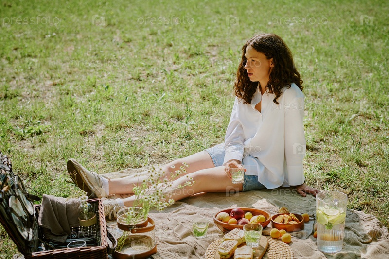 Женщина, отдыхающая на пикнике в парке во время летнего дня