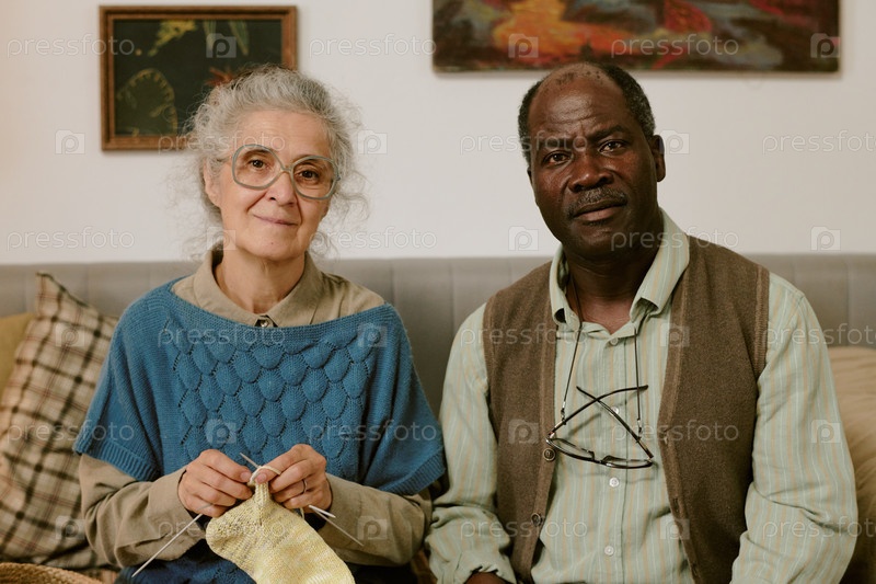 Портрет старшей женщины и старшего чернокожего мужчины, сидящих вместе в помещении