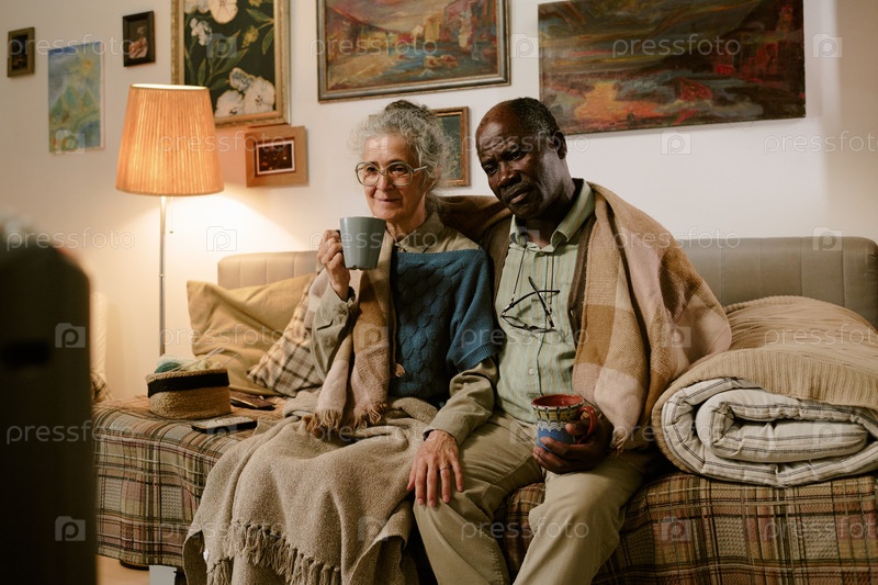 Старшая женщина и старший чернокожий мужчина сидят вместе и отдыхают в помещении