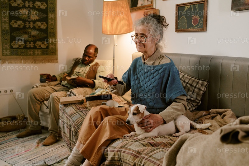Старшая женщина и старший чернокожий мужчина сидят в помещении, испытывая бедность