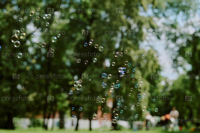 Пузыри летают в парке на открытом воздухе