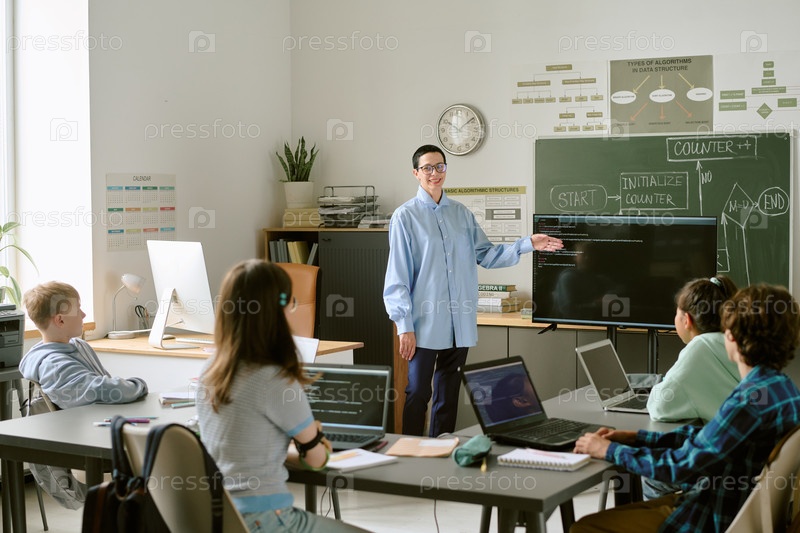 Женщина среднего возрастаОбучение программированию для различных подростков в классе
