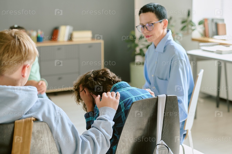 Подросток утешает расстроенного подростка во время групповой сессии терапии