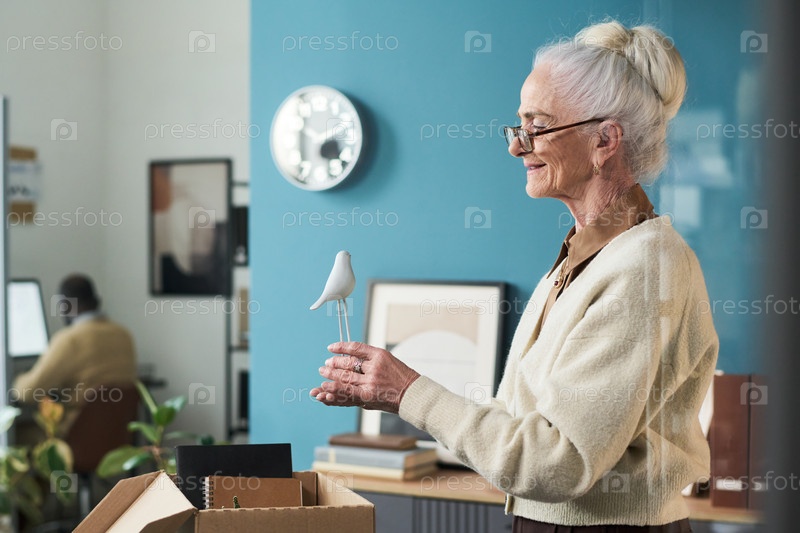 Старшая женщина улыбается, разрабатывая декоративную птицу в помещении