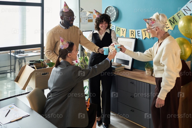 Пожилая женщина тостирует во время празднования выхода на пенсию