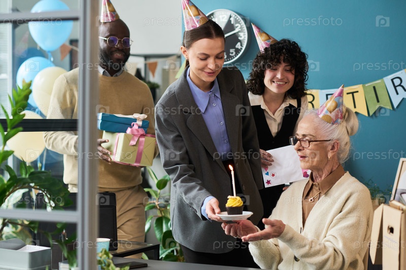 Старшая женщина получает кексы