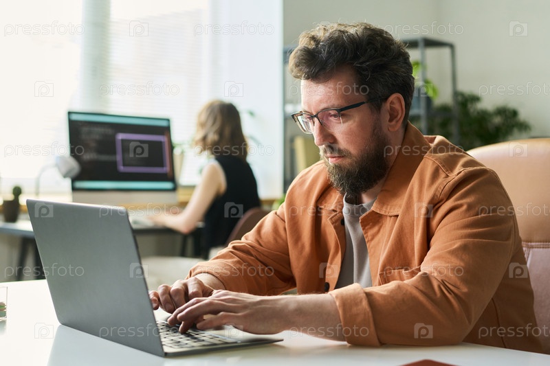 Человек разрабатывает нейронную сеть на ноутбуке в офисе