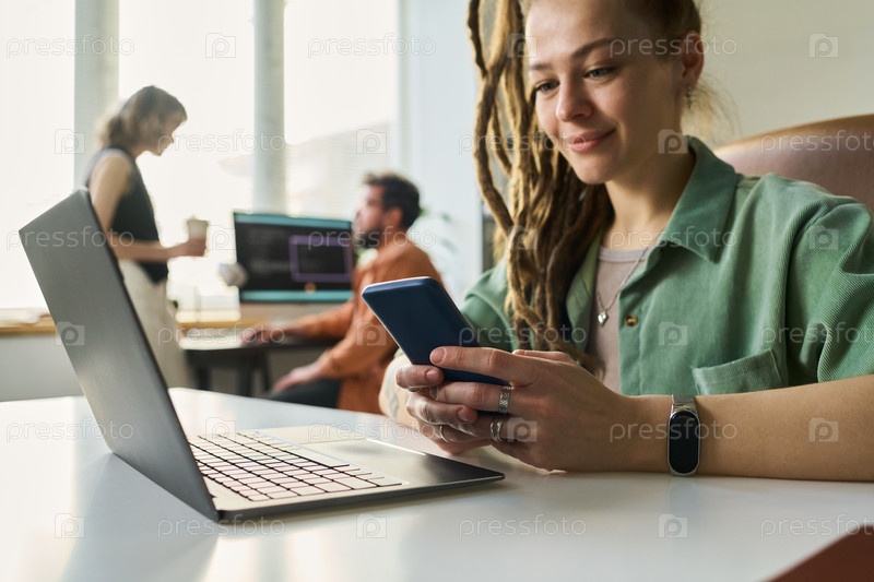 Женщина, разрабатывающая нейронную сеть с помощью ноутбука и смартфона