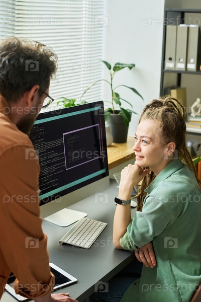 Молодая женщина сотрудничает с коллегой по кодированию нейронных сетей