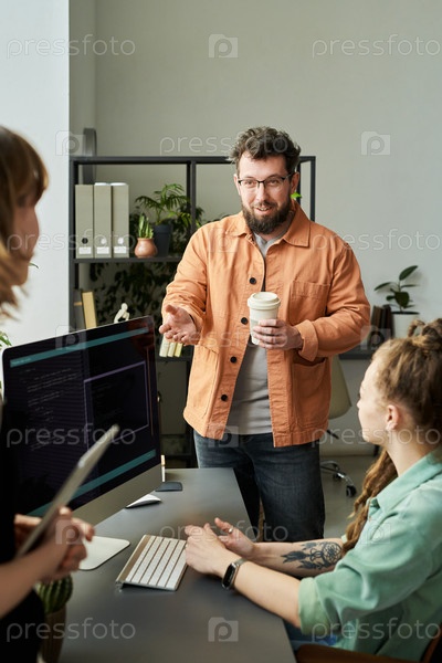 Человек объясняет коллегам развитие нейронных сетей