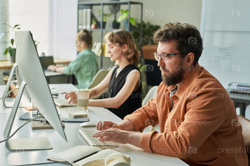 Человек разрабатывает нейронную сеть с коллегами в офисе