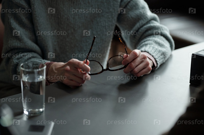 Женщина, держащая очки во время сеанса терапии