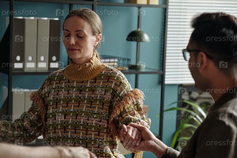 Женщина, ведущая групповую сессию терапии, практикующая осознанность