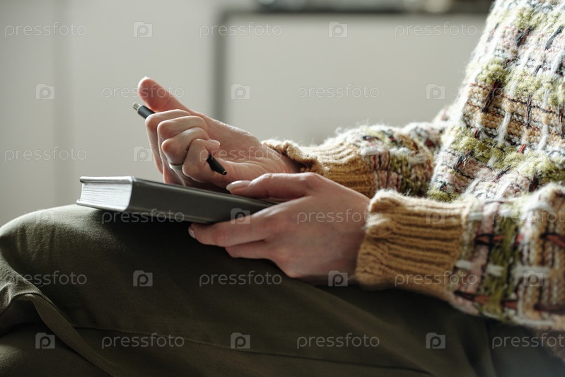 Молодая женщина делает заметки во время терапевтической сессии в помещении