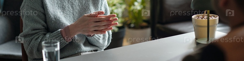 Женщина жестикулирует во время проведения терапевтической сессии в помещении