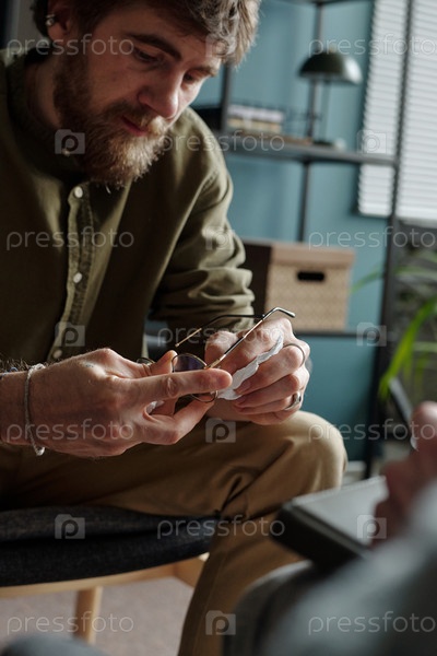 Человек, держащий очки, отражающие во время сеанса консультирования