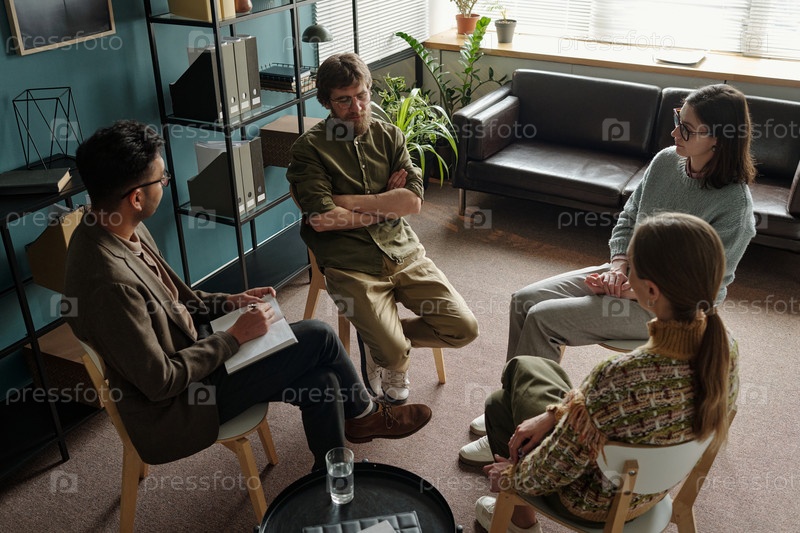 Мультиэтническая группа молодых взрослых, участвующих в терапевтических сеансах внутри помещений