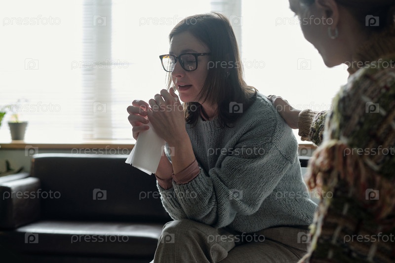 Женщина, получающая утешение во время сеанса эмоциональной терапии