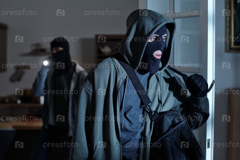 Мужчины, носящие маски Врываются в дом во время ночного ограбления