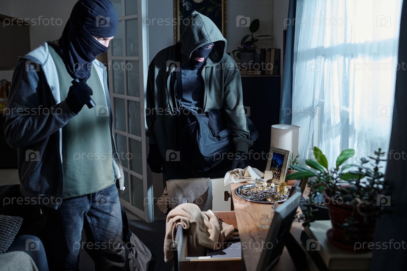Два мужчины с масками воруют ювелирные изделия во время кражи дома