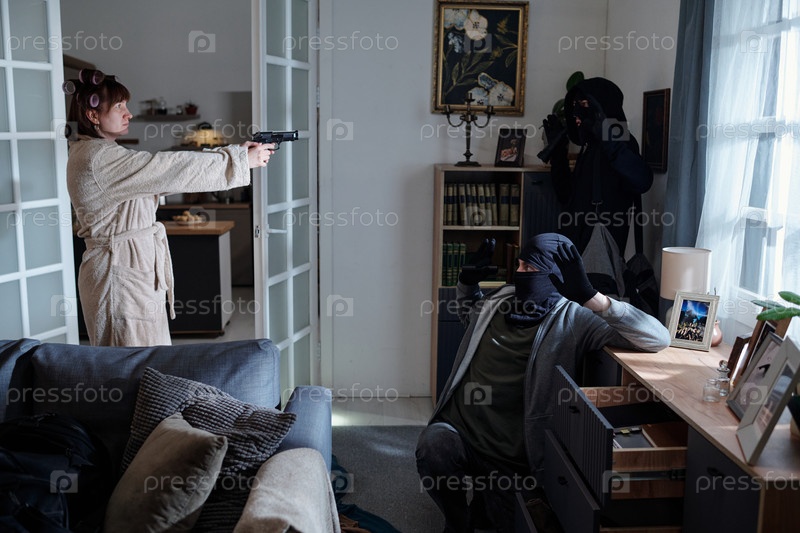 Женщина, столкнувшаяся с двумя маскированными мужчинами во время вторжения в дом
