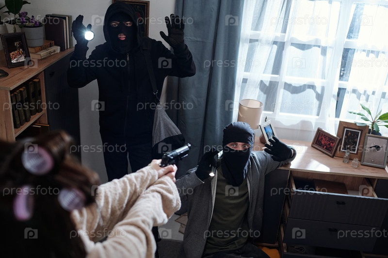 Женщина, столкнувшаяся с маскированными мужчинами ворами во время вторжения в дом