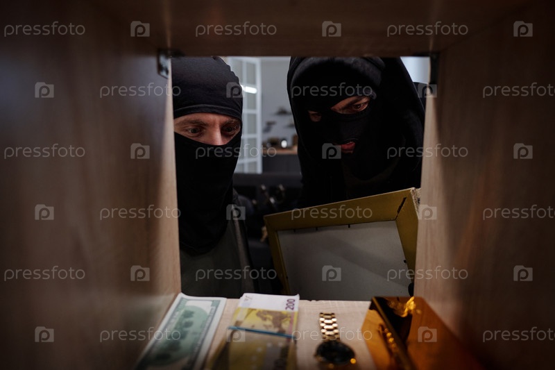 Два мужчины в масках воруют деньги и драгоценности