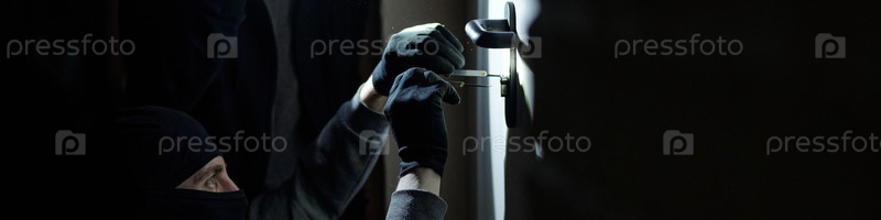 Вор подбирает дверной замок во время попытки вторжения в дом мужчины