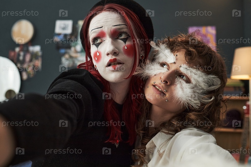 Девочки-подростки, выражающие творчество с художественным макияжем дома