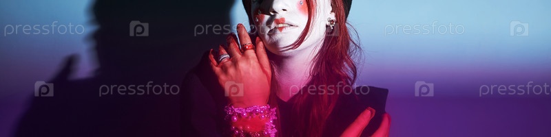 Девушка-подросток с креативным макияжем позирует драматически в помещении