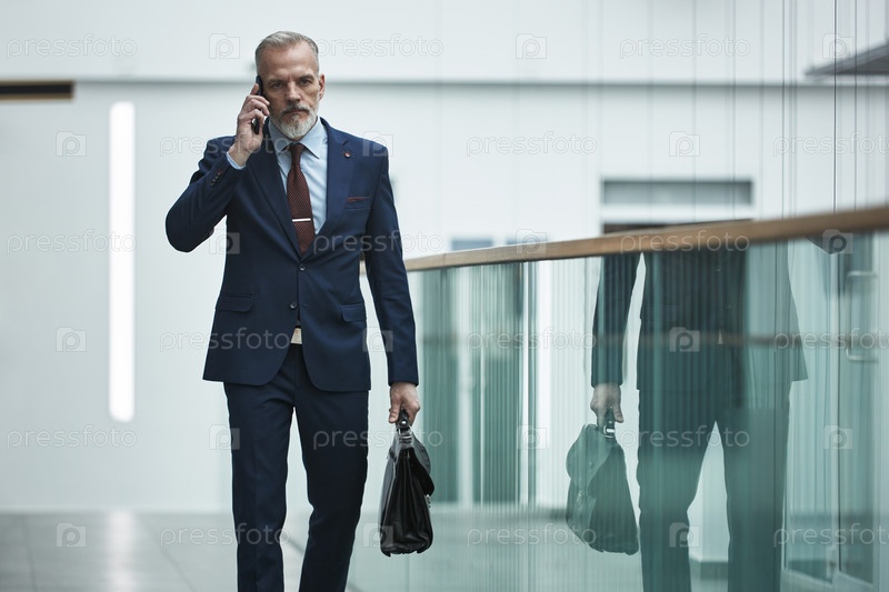 Старший бизнесмен ходит по офисному коридору