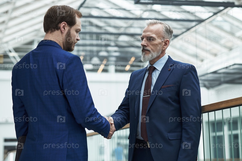Бизнесмены пожимают друг другу руки в современной офисной обстановке