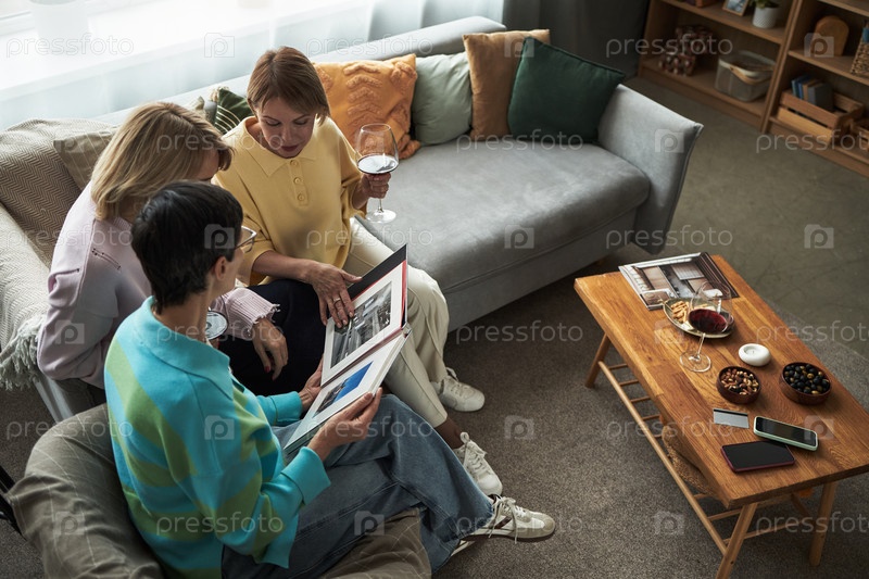 Группа молодых взрослых женщин, расслабляющихся и делящихся воспоминаниями вместе