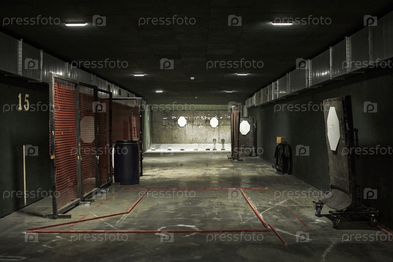 Пустой Indoor Shooting Range с целями, ожидающими участников клуба