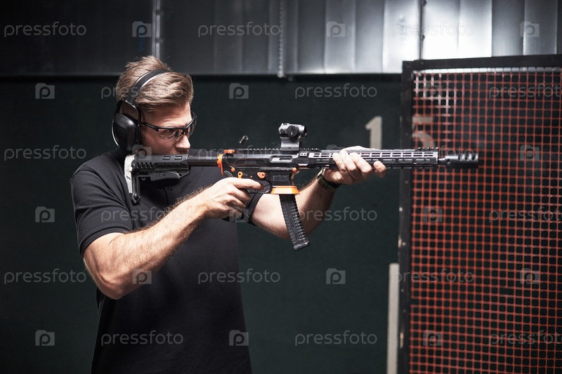 Клиент практикует стрельбу из винтовки в Indoor Gun Club Male