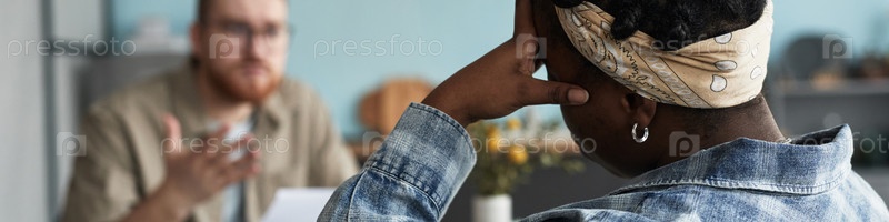 Молодой мужчина и молодая чернокожая женщина спорят во время конфликта отношений